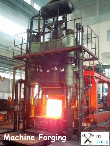 मशीन फोर्जिंग संक्रिया में, गर्म जॉब पर पॉवर हैमर या फोर्जिंग मशीन का प्रयोग करके जॉब को निश्चित आकार प्रदान किया जाता है |