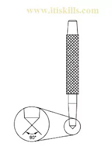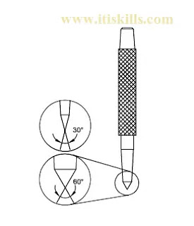 60° वाले प्रिक पंच का प्रयोग विटनेस चिन्हों को स्पष्ट करने के लिए किया जाता है |
