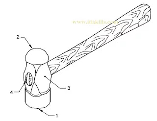 हथौड़ी के मुख्य भाग शीर्ष (Head) तथा हत्था (Handle) होते हैं | इसका हेड ड्राप फोर्जिंग कार्बन इस्पात से बनाया जाता है तथा हैंडल को मुख्यतः ऐसे लकड़ी से बनाया जाता है जो कम्पन को सहन कर सके |