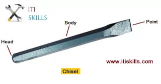 छेनी के मुख्यतः तीन अंग शीर्ष (Head), बॉडी (Body) और नोक (Point or Cutting Edge) होते हैं | यह उच्च कार्बन स्टील की बनी होती हैं | chisel या छेनी का सही नोक या कर्तन कोण (Point Angle) चिपिंग किये जाने वाले पदार्थकी धातु पर निर्भर करता है |