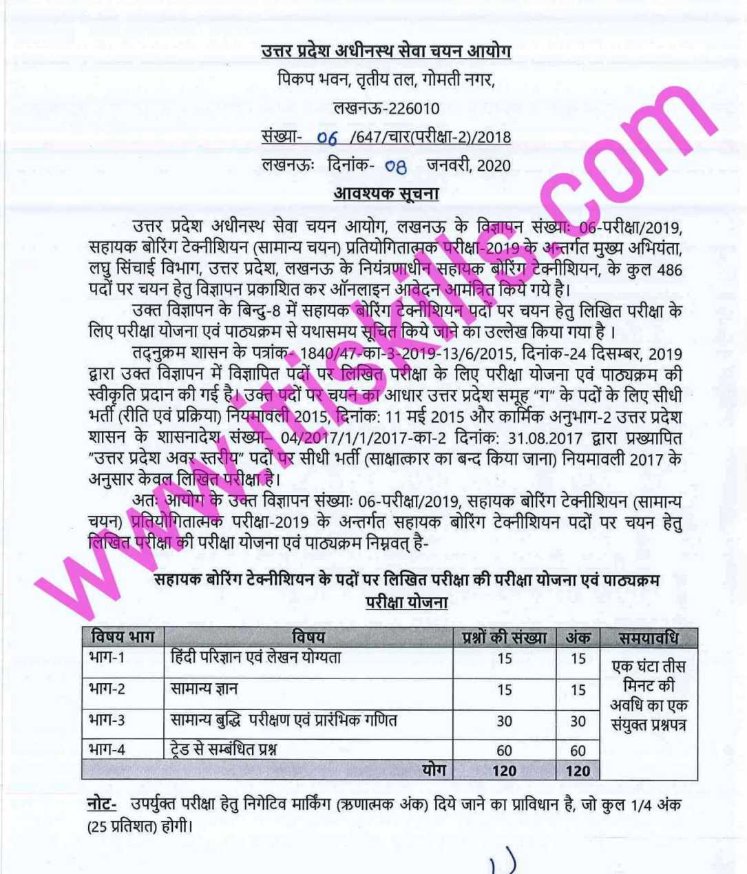 सहायक बोरिंग तकनीशियन (सामान्य चयन ) परीक्षा सूचना  2021(Uttar Pradesh Sahayak Boring Technician Examination 2021)