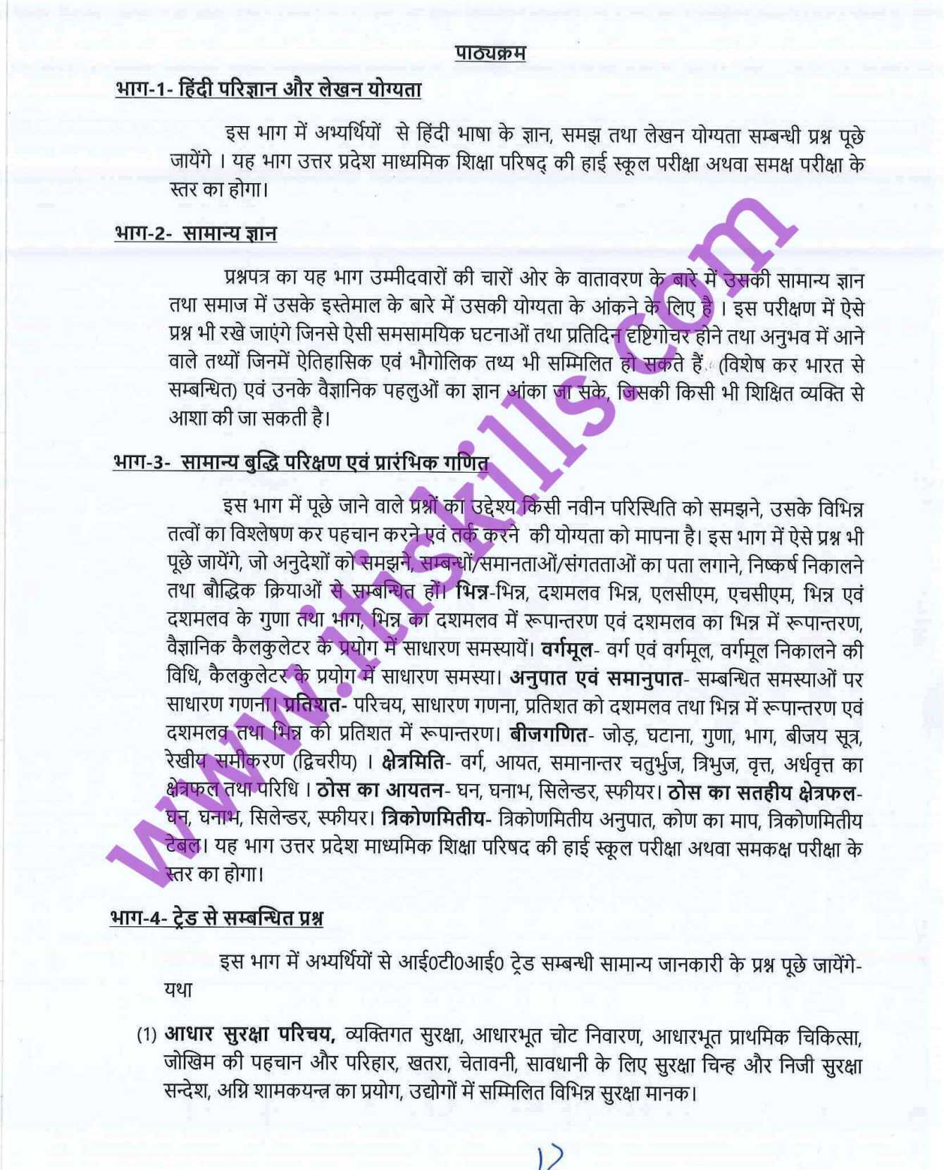 UPSSSC सहायक बोरिंग तकनीशियन परीक्षा पाठ्यक्रम (Syllabus)